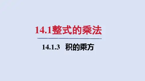 人教版数学八年级上册《第二课时 15.1.3积的乘方》说课稿一. 教材分析人教版数学八年级上册《第二课时 15.1.3 积的乘方》这一节,主要让学生掌握积的乘方运算法则。