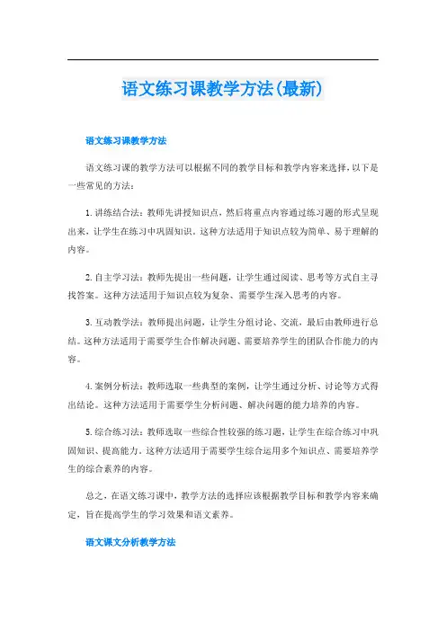 例如,在教学课文时,可以采用讲授、讨论、演示、问题解答等多种方法结合使用,提高教学的多样性和趣味性。