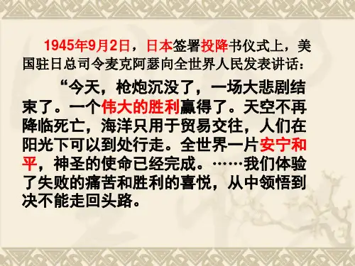 二战日本无条件投降标志是什么作者:蔡元来源:《试题与研究·教学论坛》2016年第13期现行高中历史教材中关于二战日本无条件投降问题的表述,几乎无一例外的以1945年8月14日日皇签署的《停战诏书》及8月15日的“玉音放送”为标志。