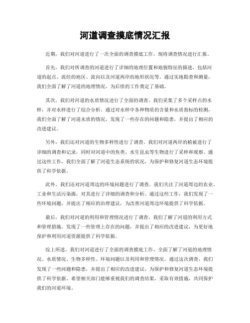 五、调研总结通过本次调研,我们深刻认识到了河道治理面临的问题和挑战。