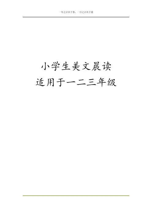 小学生经典美文欣赏(精选14篇)小学生经典美文欣赏(精选14篇)古往今来,无数中外名人都在强调着读书的重要意义。