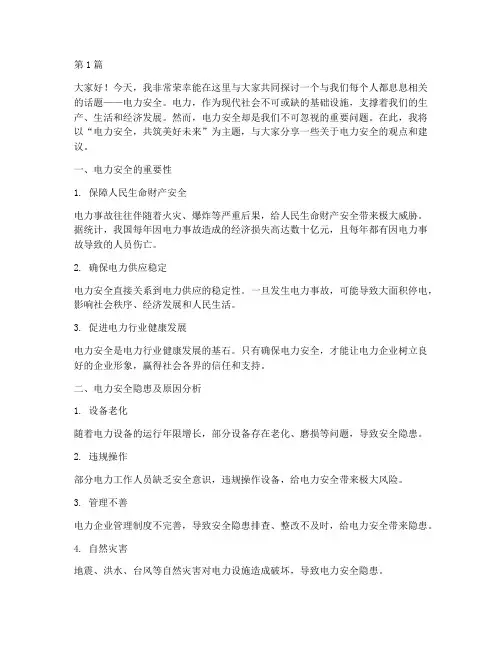第1篇尊敬的各位领导、亲爱的同事们:大家好!今天,我非常荣幸能够站在这里,与大家共同探讨电力安全这个至关重要的议题。