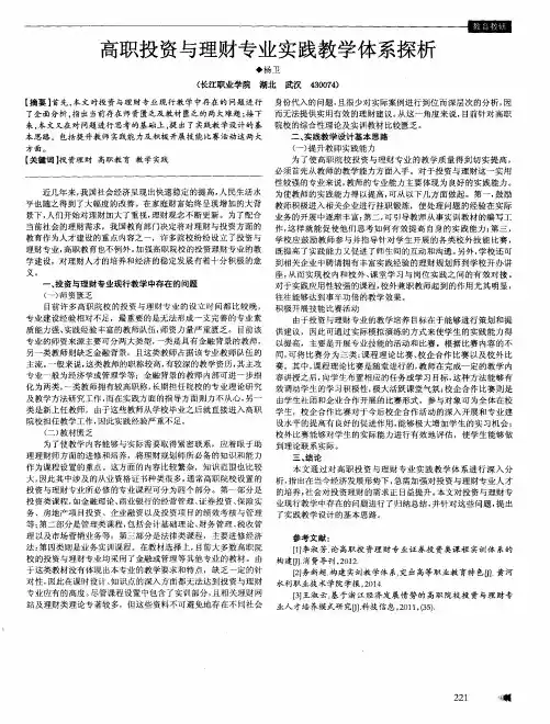 1.2 高职院校投资与理财专业的重要性随着我国经济发展的快速变化和金融市场的不断发展,投资与理财已经成为人们日常生活中不可或缺的一部分。