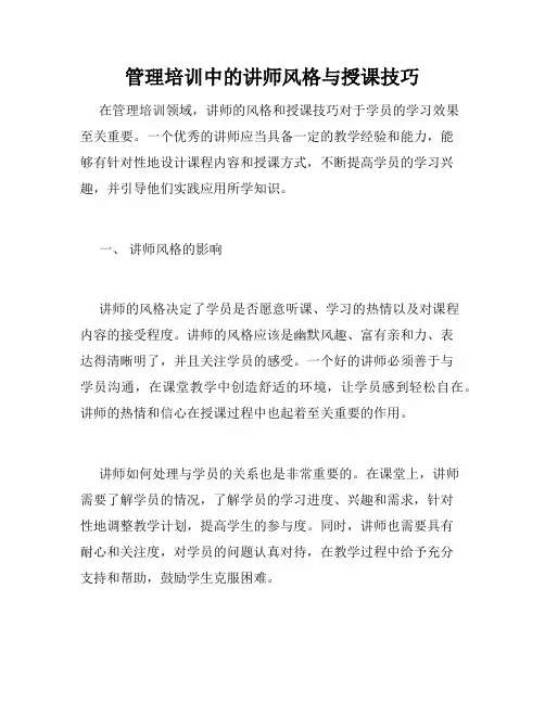 管理培训中的讲师风格与授课技巧在管理培训领域,讲师的风格和授课技巧对于学员的学习效果至关重要。