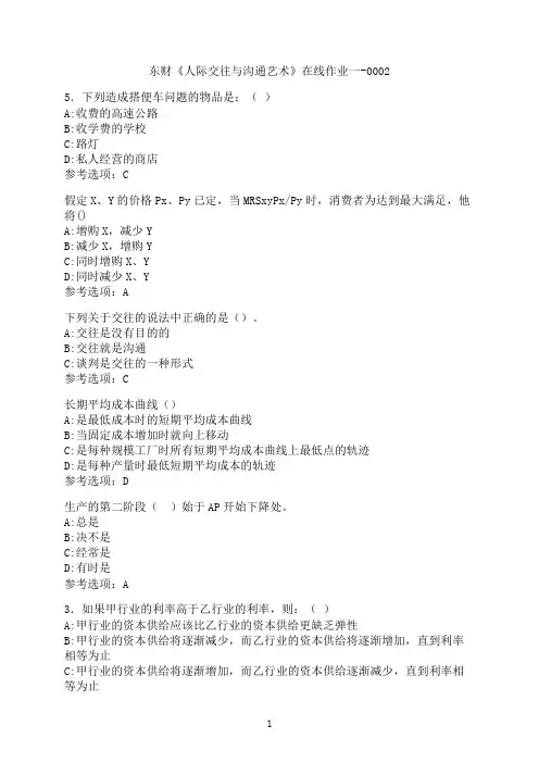 A 交往是没有目的的B 交往就是沟通C 谈判是交往的一种形式4 乘坐主人驾驶的轿车时,最重要的是()。