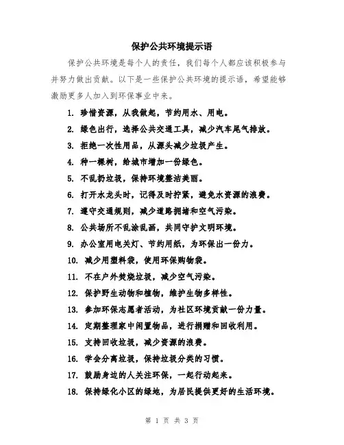以上是一些常见的公共场所卫生提示语,希望能给大家提供一些参考和启示,让我们共同创建一个干净、卫生的公共环境。