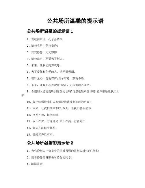 20. 心与心的交流需要静静地聆听!保持公共场所安静的提示语集锦1. 教室走廊不嬉戏,同学玩乐守秩序2. 上下楼梯靠右行,你谦我让脚步轻。