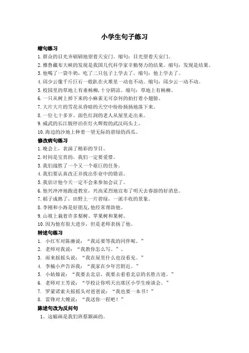 小学生句子练习缩句练习1.群众的目光齐刷刷地望着天安门。