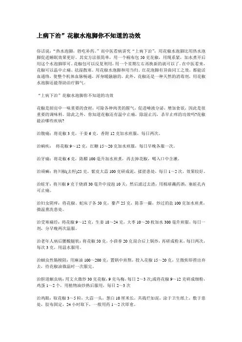 上病下治”花椒水泡脚你不知道的功效俗话说:“热水泡脚,胜吃补药。
