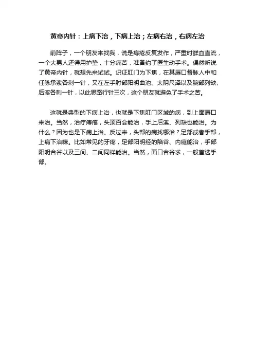 “左病右治,上病下治”等理念,最早来自《黄帝内经.素问五常政大论》,原文:“ 气反者,病在上,取之下;病在下,取之上;病在中,傍取之。