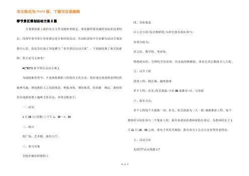 三、宣传推广1. 借助社交媒体通过景区的官方微博、微信公众号等社交媒体平台,积极宣传和推广春节活动。