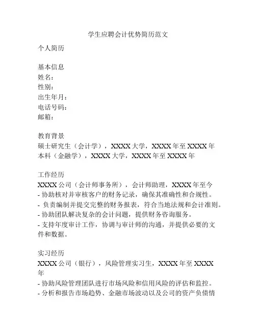 学生应聘会计优势简历范文