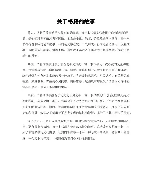 我与书籍的故事篇一我与书籍的故事要说我跟书的故事啊,那可真是三天三夜说不完。