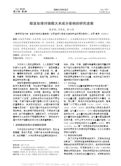 Grain Science And Technology And Economy粮食科技与经济2021 年8月第46卷 第4期Aug. 2021Vol.46, No.4大米作为人类的主要食物,为人类提供了丰富的碳水化合物、蛋白等营养成分[1-2]。