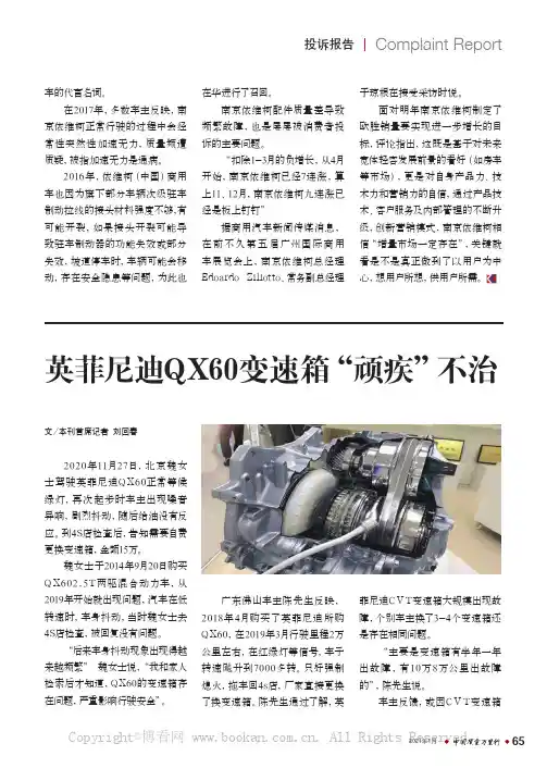 结语英菲尼迪QX60无级变速器的保养和诊断需要一定的专业知识和技能。