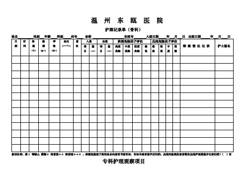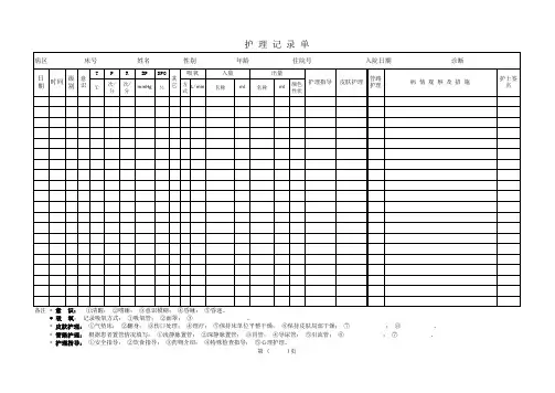 7.肤情、气管切开、压疮、出入量等栏目根据实际情况填写。
