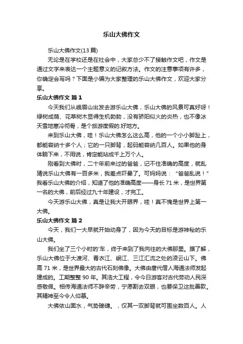 希望有一天,我也能亲自前往乐山,瞻仰这尊雄伟的佛像,领略它的气势磅礴!篇2乐山大佛乐山大佛,就像一位威武雄壮的卫士,守护着乐山这座美丽的城市。