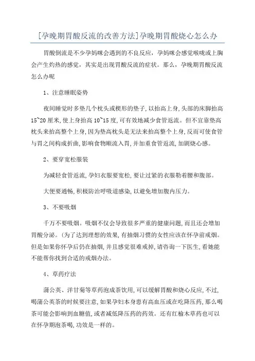 [孕晚期胃酸反流的改善方法]孕晚期胃酸烧心怎么办胃酸倒流是不少孕妈咪会遇到的不良反应,孕妈咪会感觉喉咙或上胸会产生灼热的感觉,其实是出现胃酸反流的症状。