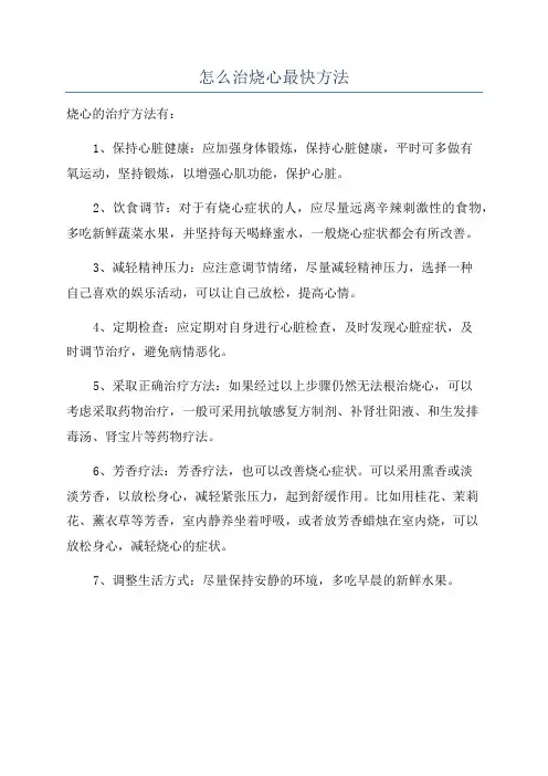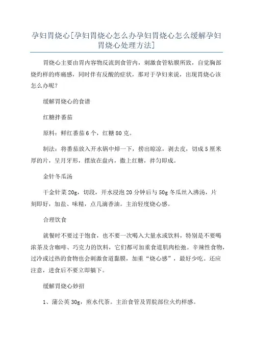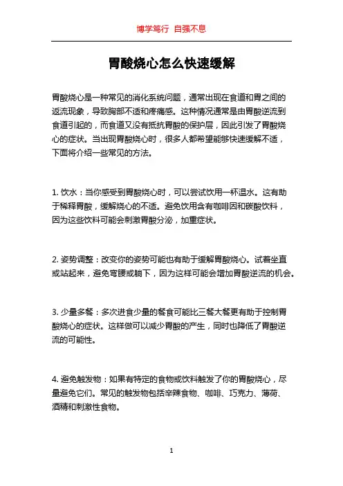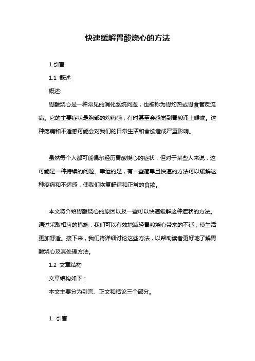 2.2 快速缓解胃酸烧心的方法在这一部分,我们将提供一些常见且经过验证的方法,用于快速缓解胃酸烧心。