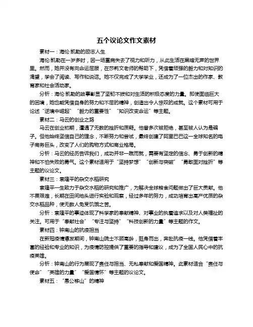 搜集5个人物素材作文人物素材作文一:坚持的力量——爱迪生爱迪生是一位伟大的发明家,他的一生充满了无数的发明和创新。