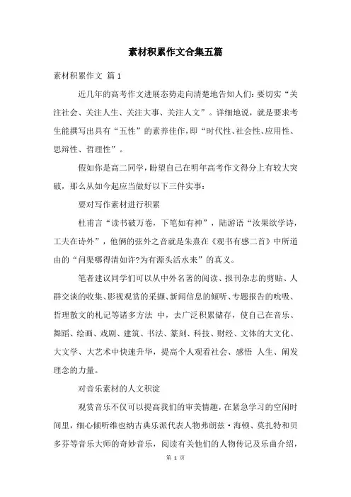 高考作文素材积累摘抄(5篇)高考作文素材积累摘抄(5篇)相信各位都写过作文,写作文是培养人们的观察力、联想力、想象力、思考力和记忆力的重要手段。