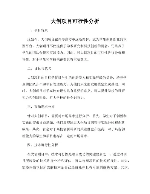 大创项目可行性分析一、项目背景现如今,大创项目在许多高校中逐渐兴起,成为学生创新创业的重要平台。