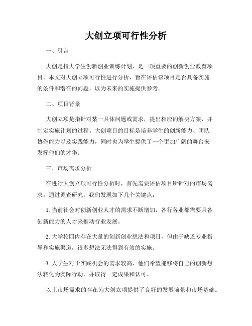 大创项目的可行性分析在当今竞争激烈的社会环境中,大学生创新创业项目(简称大创项目)越来越受到重视。