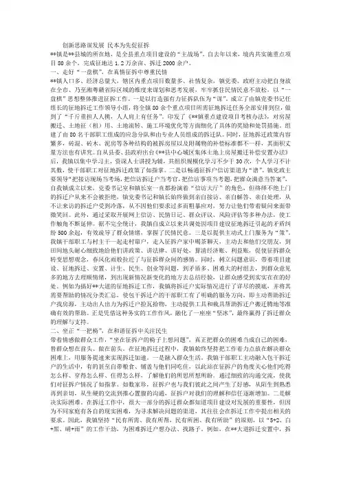 材料三:经验和方法的交流针对征地拆迁的问题和困难,我们可以借鉴一些经验和方法来解决。