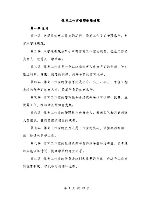 体育工作室管理制度模版第一章总则第一条为规范体育工作室的运行,提高工作室的管理水平,制定本管理制度。