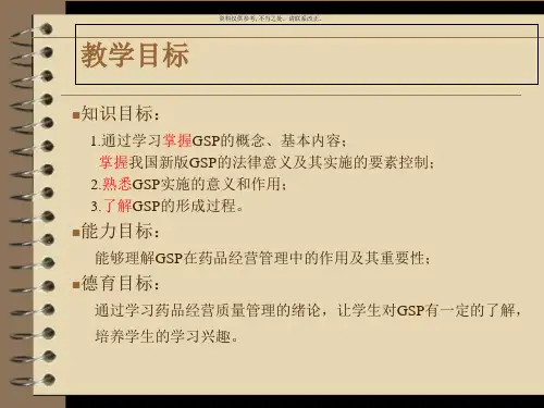 药品GSP是一项科学规的全面、全员、全过程的药品质量管理模式,在执行过程中需要整个公司成员的共同参与。