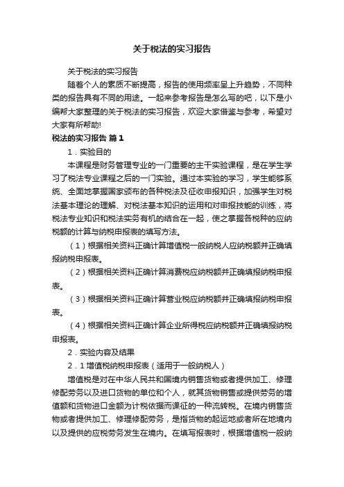 一、实习背景与目的随着我国税收制度的不断完善和税收改革的深入推进,税法作为一门实践性很强的学科,对于培养具备税收专业知识和实际操作能力的复合型人才具有重要意义。