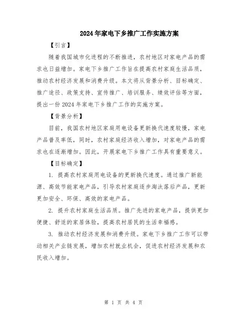 2024年家电下乡推广工作实施方案【引言】随着我国城市化进程的不断推进,农村地区对家电产品的需求也日益增加。