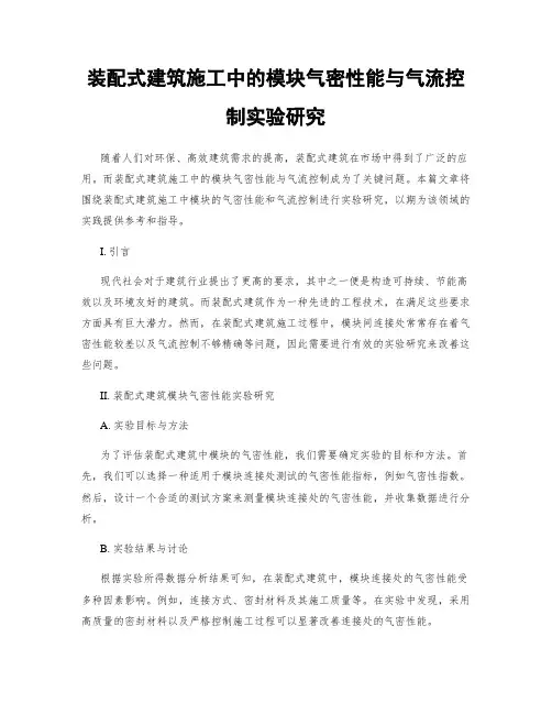 三、气密性技术研究1. 装配式建筑中气密问题的挑战装配式建筑中常常存在由于施工误差或材料缺陷引起的漏风问题,而这些漏风现象会导致室内温度不稳定、冷气进入及噪音传递等一系列问题。