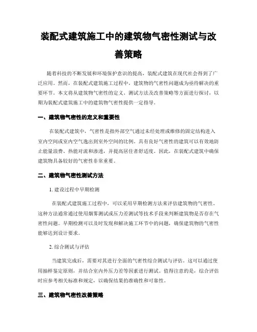 二、建筑物气密性测试方法1. 建设过程中早期检测在装配式建筑施工过程中,可以采用早期检测方法来评估建筑物的气密性。