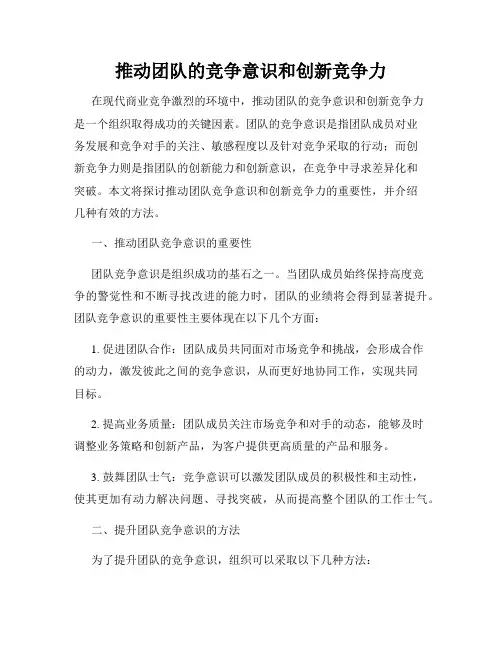 推动团队的竞争意识和创新竞争力在现代商业竞争激烈的环境中,推动团队的竞争意识和创新竞争力是一个组织取得成功的关键因素。