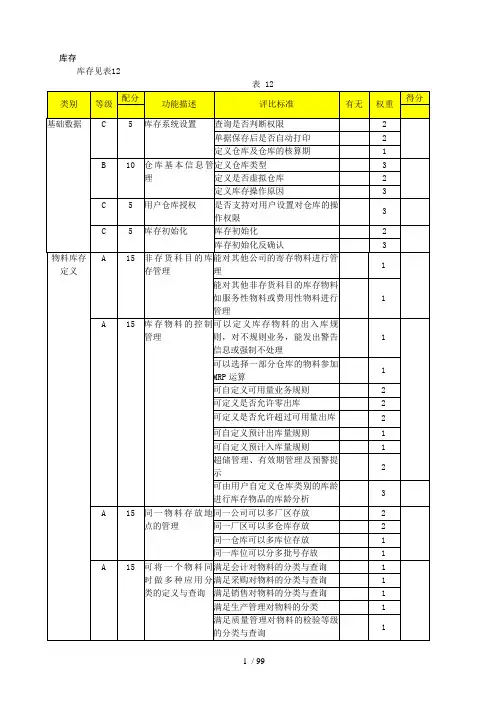 Gartner Group提出ERP具备的功能标准应包括四个方面:1.超越MRPⅡ范围的集成功能2.支持混合方式的制造环境3.支持能动的监控能力,提高业务绩效4.支持开放的客户机/服务器计算环境ERP项目的风险通常人们在考虑失败的因素时,一般着重于对实施过程中众多因素的分析,而往往忽视项目启动前和实施完成后ERP系统潜在的风险。
