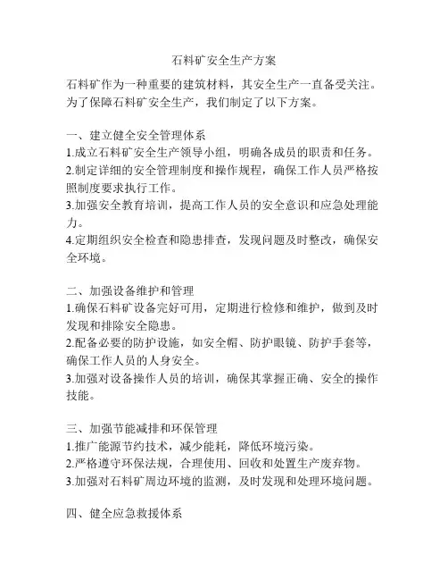 一、建立健全安全管理体系1.成立石料矿安全生产领导小组,明确各成员的职责和任务。