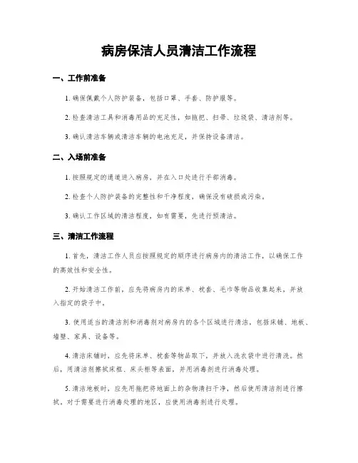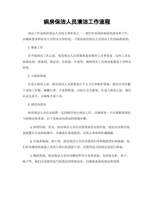 2. 入场前准备在进入病房之前,病房保洁人员需要进行个人卫生和防护措施。