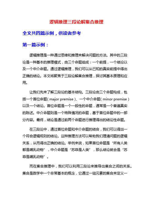 通过运用三段论的逻辑推理形式,我们可以更好地理解和分析集合之间的关系。