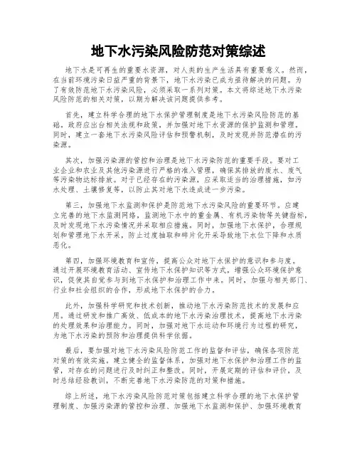 2. 正文2.1 地下水污染原因分析地下水污染的原因可以分为自然因素和人为因素两大类。
