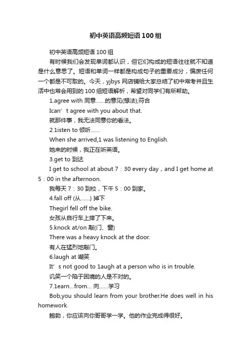 初中英语高频短语100组初中英语高频短语100组有时候我们会发现单词都认识,但它们构成的短语往往就不知道是什么意思了。