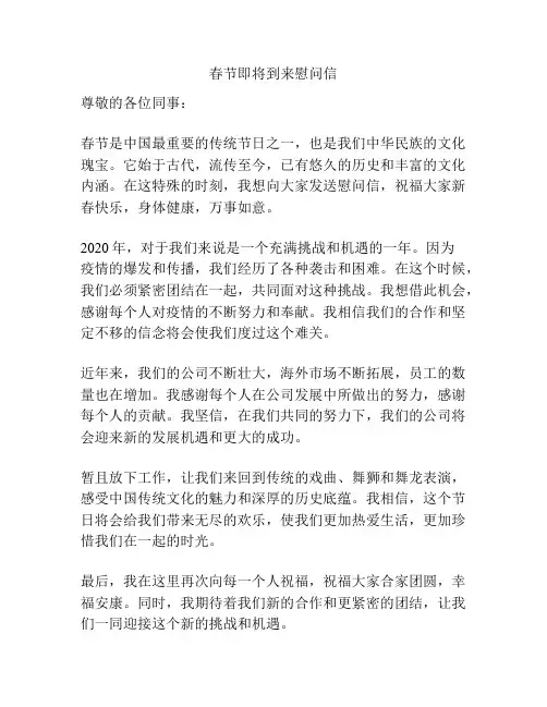 春节即将到来慰问信