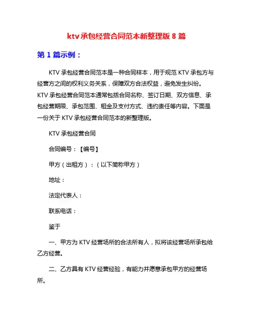 同时提供优质服务如热情待客礼貌待客介绍商品做好售后服务工作等内容为顾客创造美好的消费体验氛围篇2甲方(发包方):____________________乙方(承包方):____________________鉴于甲方需将其吧台业务交由专业团队承包经营,乙方具备相关资质和经验,双方经友好协商,达成如下承包合同:一、承包范围1. 乙方负责承包甲方的吧台业务,包括但不限于饮品制作、销售及相关服务工作。