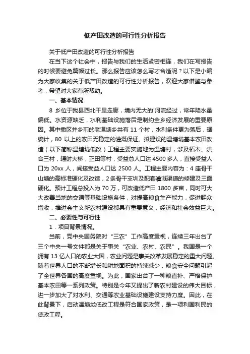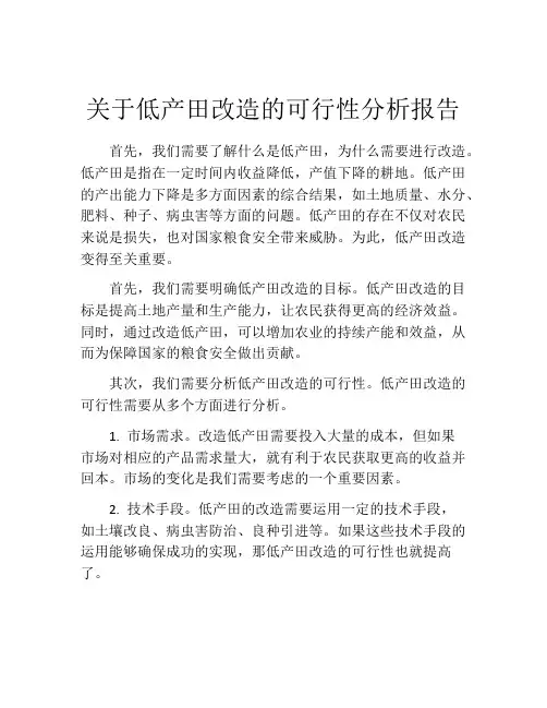 关于低产田改造的可行性分析报告首先,我们需要了解什么是低产田,为什么需要进行改造。