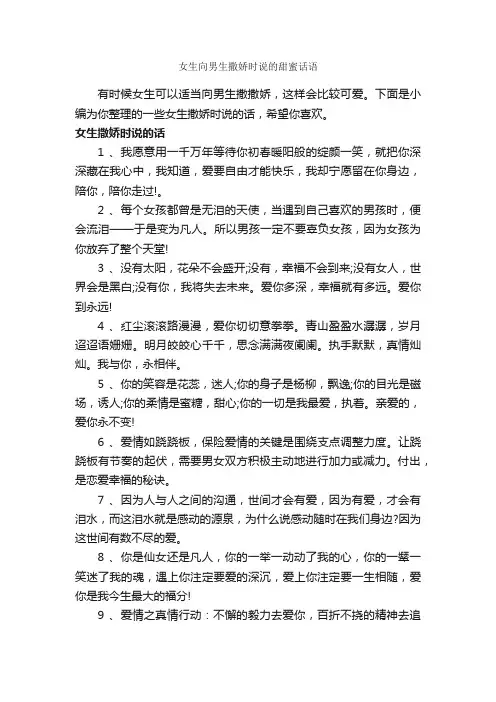 下面是店铺为大家精心推荐的女生撒娇的话,希望能够对您有所帮助。