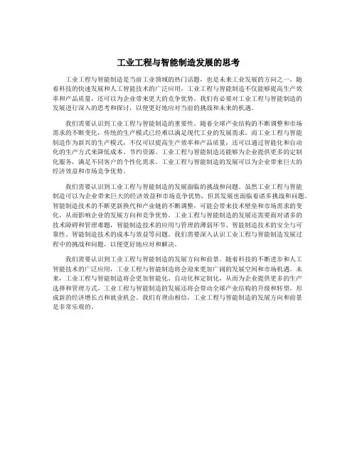 工业工程与智能制造发展的思考【摘要】工业工程与智能制造在当今的发展中扮演着非常重要的角色。