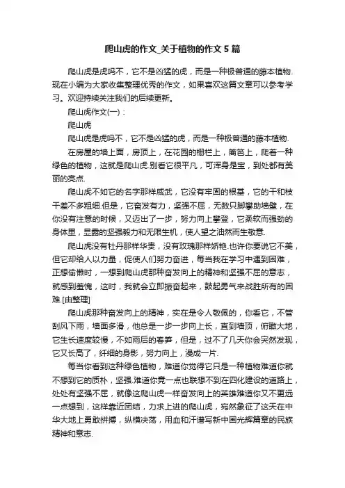 爬山虎的作文_关于植物的作文5篇爬山虎是虎吗不,它不是凶猛的虎,而是一种极普通的藤本植物.现在小编为大家收集整理优秀的作文,如果喜欢这篇文章可以参考学习。
