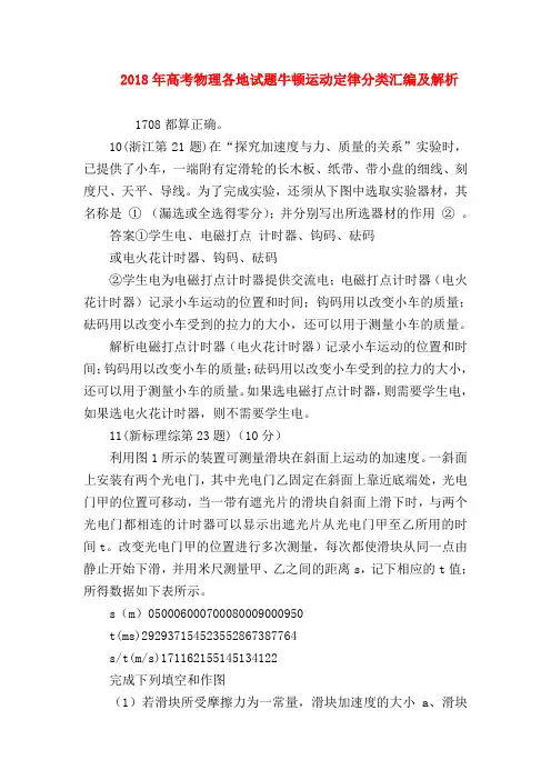 2018年高考物理各地试题牛顿运动定律分类汇编及解析1708都算正确。