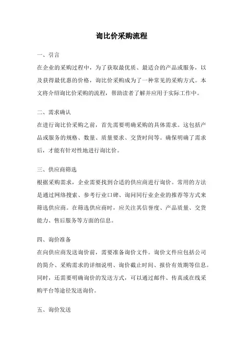 二、需求确认在进行询比价采购之前,首先需要明确采购的具体需求。
