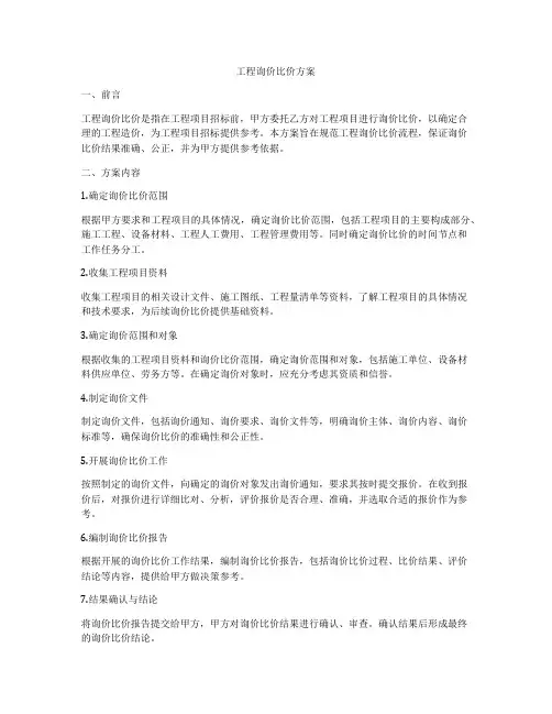 二、比较1.确定标准在比较报价时,企业需要确定比较标准,包括价格、质量、交货期等方面的要求。
